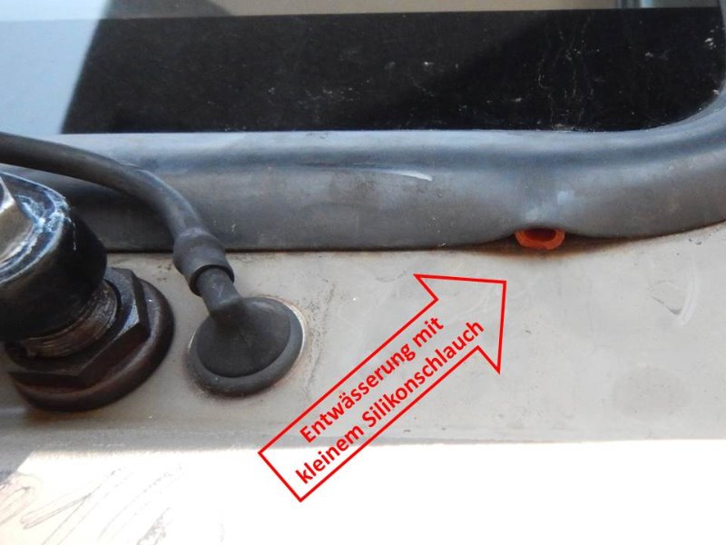 Wer hat Tipps wie ich das Wasser abfließen lassen kann, welches sich im unteren Bereich der Dichtung sammelt? Bitte nur Tipps ohne einkleben der Scheibe.