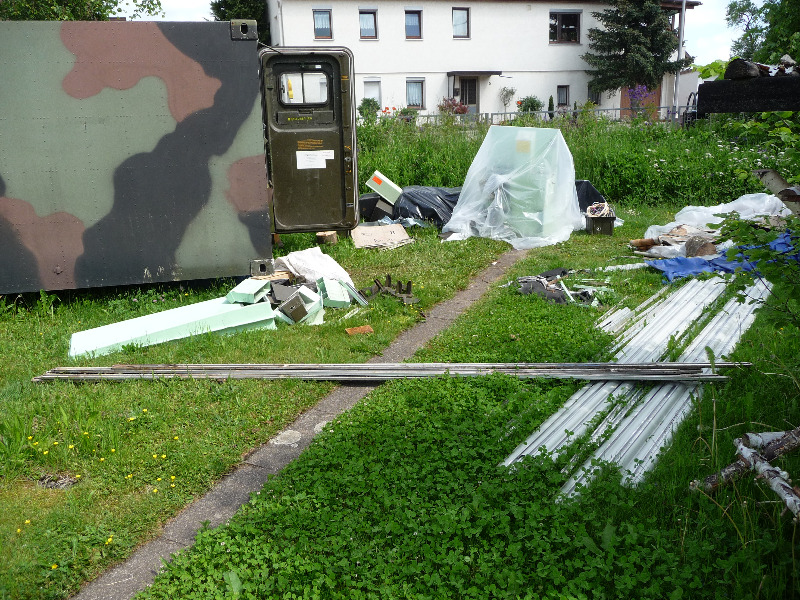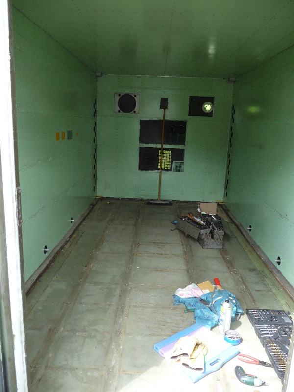 Shelter ist nun ausgeräumt. Boden ist raus. Blechboden und Seitenteile sind als Nächstes dran. Ich habe mir überlegt und ausprobiert, daß es mit einem schweren Hammer und einem scharfen Werkzeug am besten ist die Nieten mit einem Schlag zu entfernen. Gibt es noch andere Vorschläge? Die Vorgehensweise mit dem Abschleifen habe ich gelassen. Ich muss wieder mit Mundschutz arbeiten und das will ich nicht. Bin jetzt auch an der Aufteilung der Kabine. Sobald eine Skizze fertig ist, werde ich sie euch zeigen.