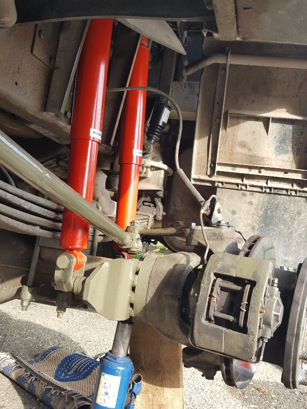 Jetzt passen die Dämpfer und Federn zum Gewicht und sind nicht mehr unterdimensioniert. Ich mag das herumschwimmen/wanken nicht. Ausserdem sind ja die originalen Dämpfer HINTER der Vorderachse.. d h die Hebelwirkung auf die Briden ist gewaltig und einseitig... nix gut..