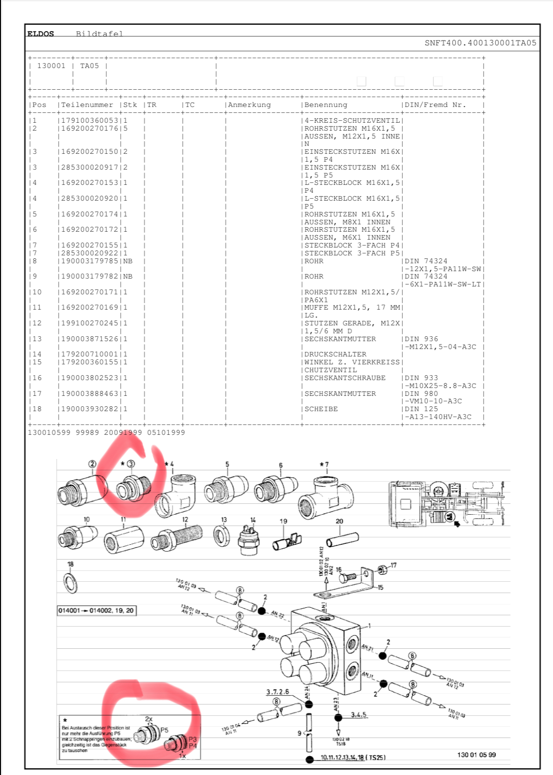 Laut Produktkatalog von Raufoss ist die Verbindung von Anschlussstutzen und Formteil bei P5 eine unlösbare Einheit.