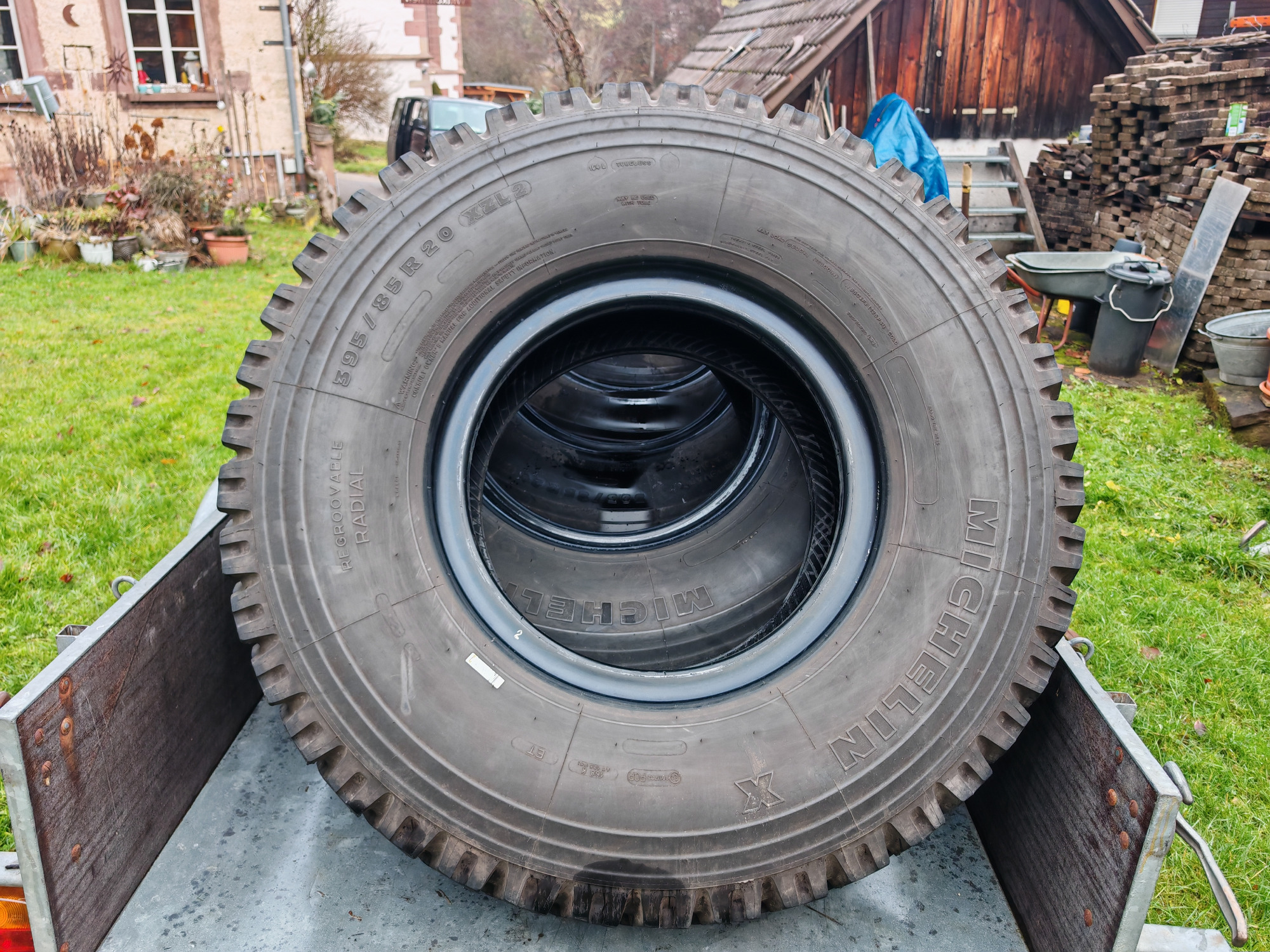 hiermit würde ich gerne einen Satz (5 Stk. inkl. neuem Ersatzrad) Michelin XZL2 in der Größe 395/85 R20 zum Verkauf anbieten.