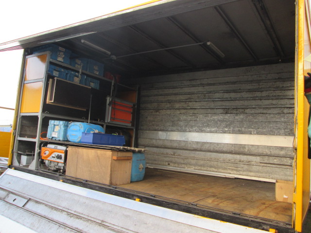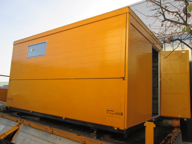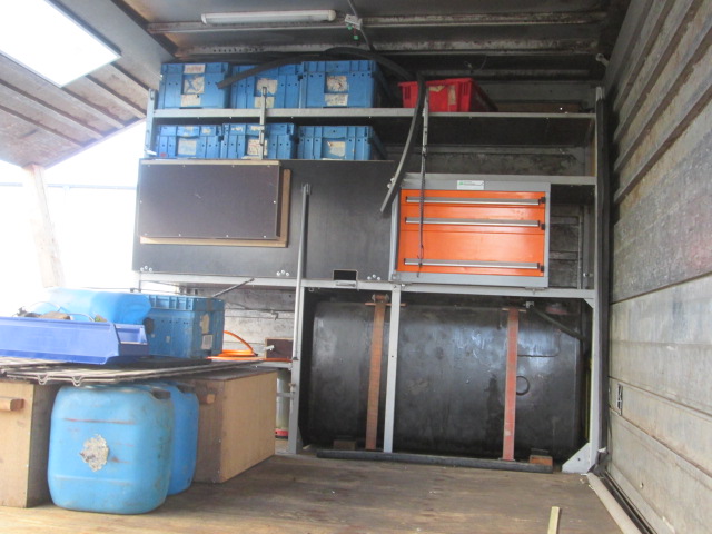 Der Aufbau ist 4,20 lang 2,50 breit und 2,20 hoch er hat an beiden Längsseiten zwei Klappe und hinten eine Türe