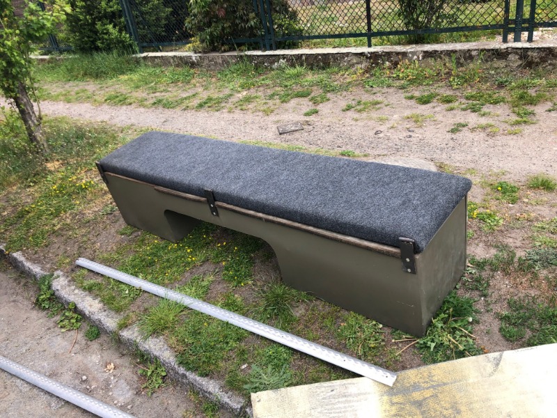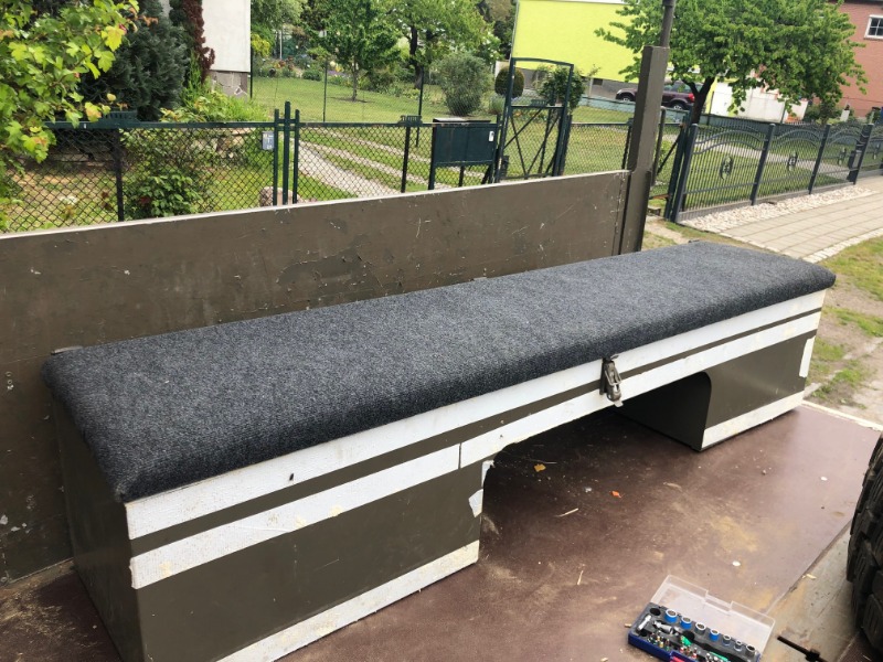 nach dem Umbau unser Pritsche für den FM2 Shelter ist eine Bank und ein Komplettrad zu verkaufen.