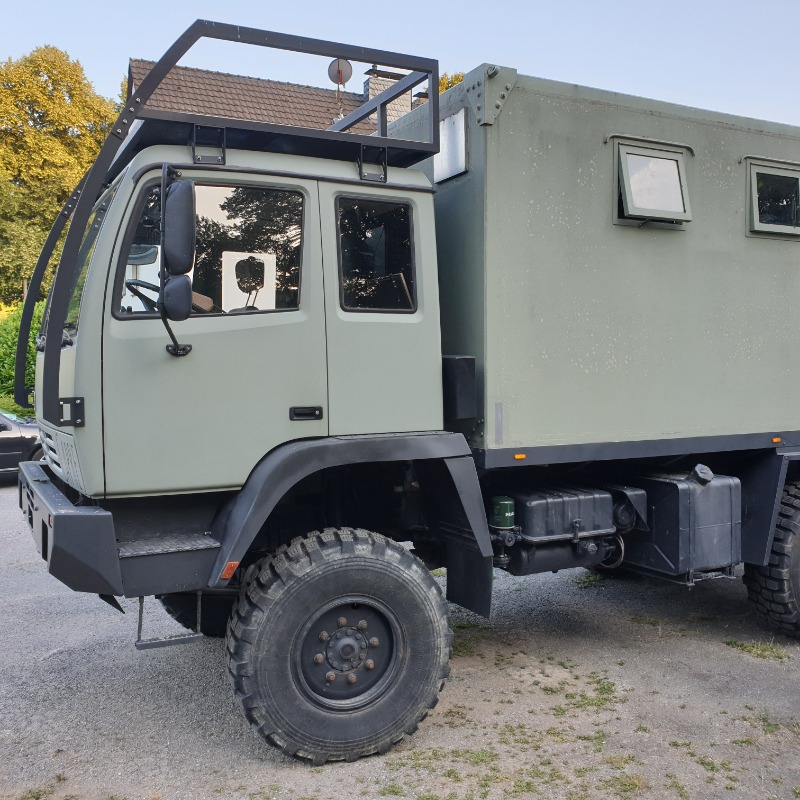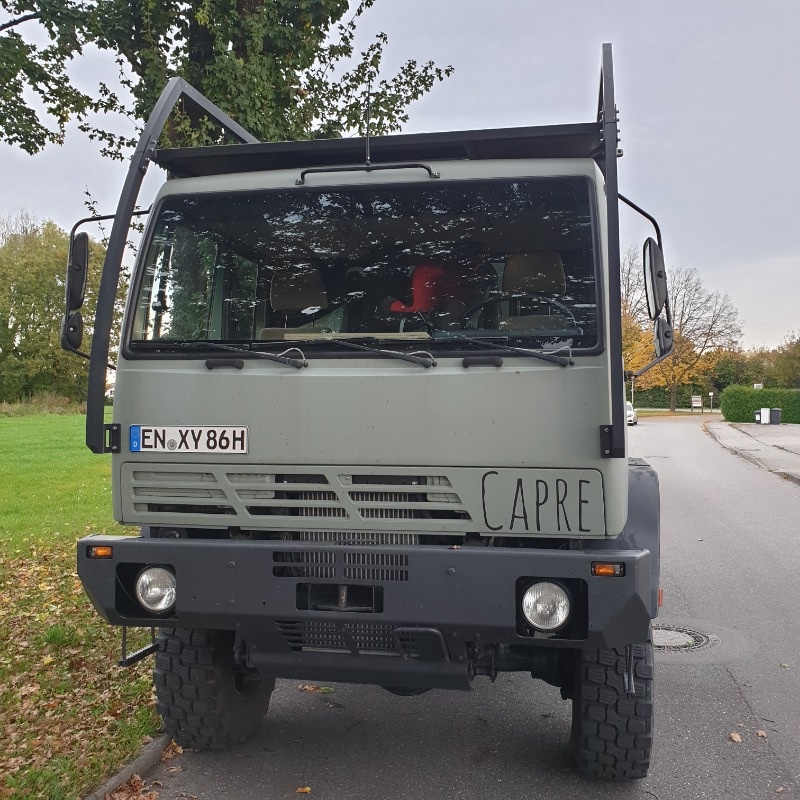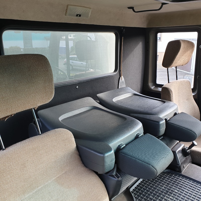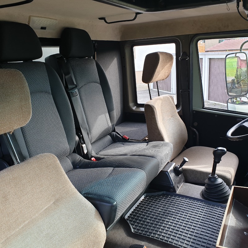 Es sind vier Sitzplätze eingetragen. Bilder der Bank, aus einem Mb Vito hatte ich mal eingestellt, Leistungssteigerung eingetragen, 210ps, Unterfahrschutz ringsum ausgetragen, die großen 14.00 sind auch schon eingetragen. Momentan sind die Originalfelgen mit Originalbereifung drauf. Der Wagen war in Deutschland nur als Womo zugelassen. Oldtimerzulassung!