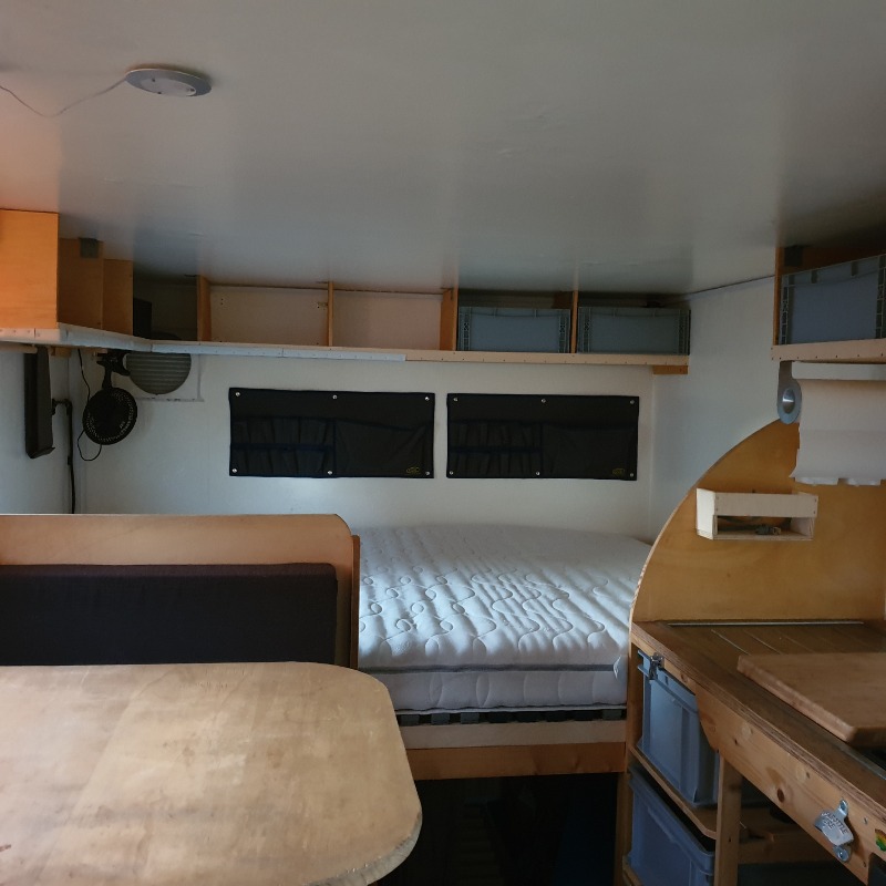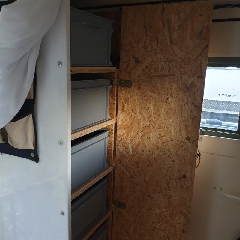 Der Shelter ist von der belgischen Armee. Da hatte Cosmo schonmal viel zu geschrieben. Es ist die Variante mit zwei Türen. Den Innenausbau habe ich selber gemacht und passt eher für größere Menschen. Ich bin 188. Es ist aber auch alles abänderbar. Der Koffer und der Ausbau war zur Probe gedacht. Es wäre jetzt eigentlich ein neuer Koffer drauf gekommen...