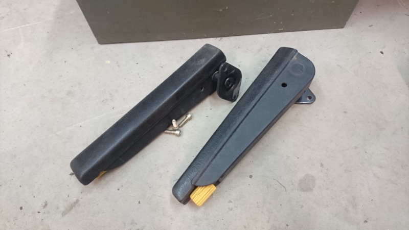 - Armlehnen (2 Paar vorhanden), welche einfach an den originalen Sitzen seitlich befestigt werden können (Befestigungspunkte sollten bei allen originalen Isri-Sitzen der 12m18 vorhanden sein)