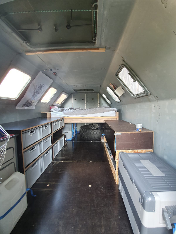 • Ausbau provisorisch (Bett:200x140, Küche, Regale)