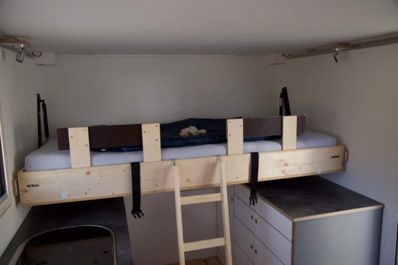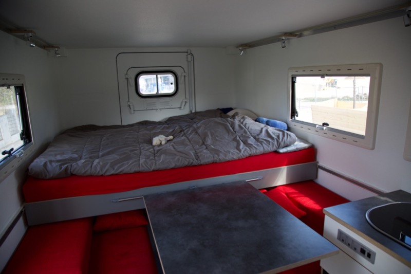 Der Steyr ist auf drei Personen ausgelegt und der Ausbau so konzipiert, dass das Fahrzeug tatsächlich unter 7.5t im Urlaub bewegt werden kann (eingetragenes Leergewicht 6990kg).