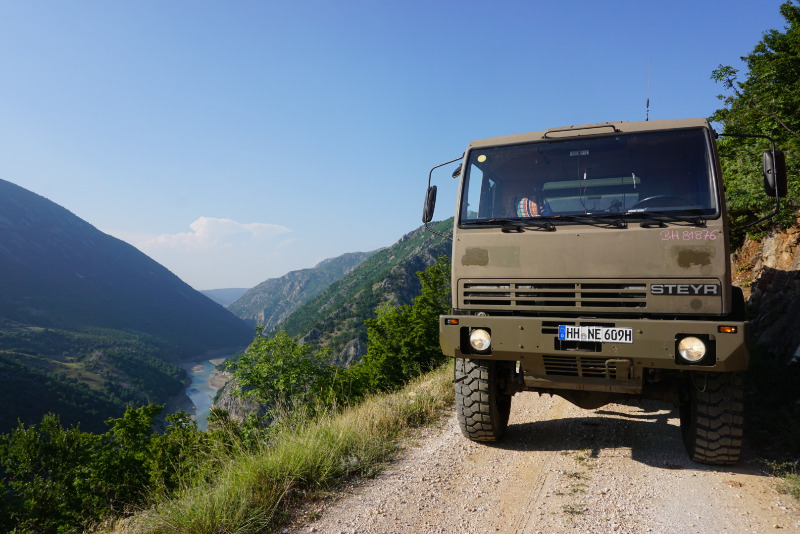 Gekauft haben wir den Steyr im September 2017 in Wien, die Zulassung in Deutschland erfolgte im Frühjahr 2018. Seitdem haben wir neben mehreren kleineren Ausflügen zwei größere Reisen mit dem LKW unternommen. Im Sommer 2018 ging es für gut drei Wochen nach Schweden und Norwegen. Im Juli/August 2019 waren wir auf einer fünfwöchigen Albanienreise. Der Steyr war uns stets ein treuer Begleiter, jedoch mussten wir feststellen, dass es für unsere Lebenssituation und unsere Art zu reisen geeignetere Fahrzeuge gibt.