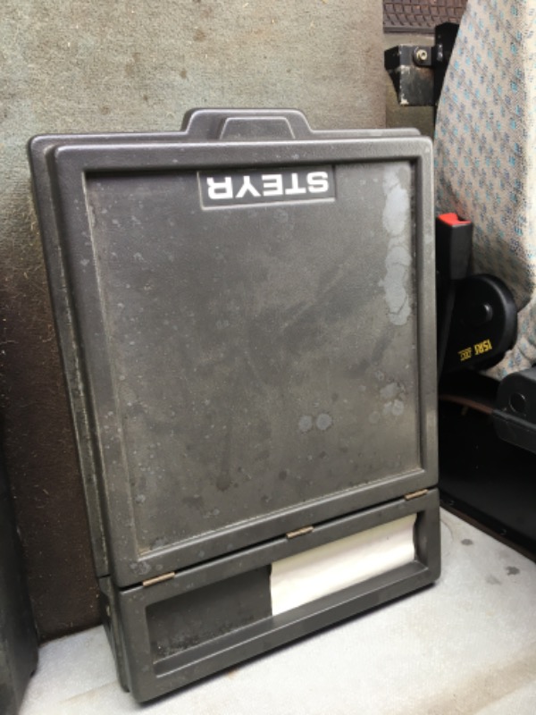 Fahrersitz Luftgefedert, Beifahrersitz ungefedert mit zwei Armlehnen (Beide Stark gebraucht)