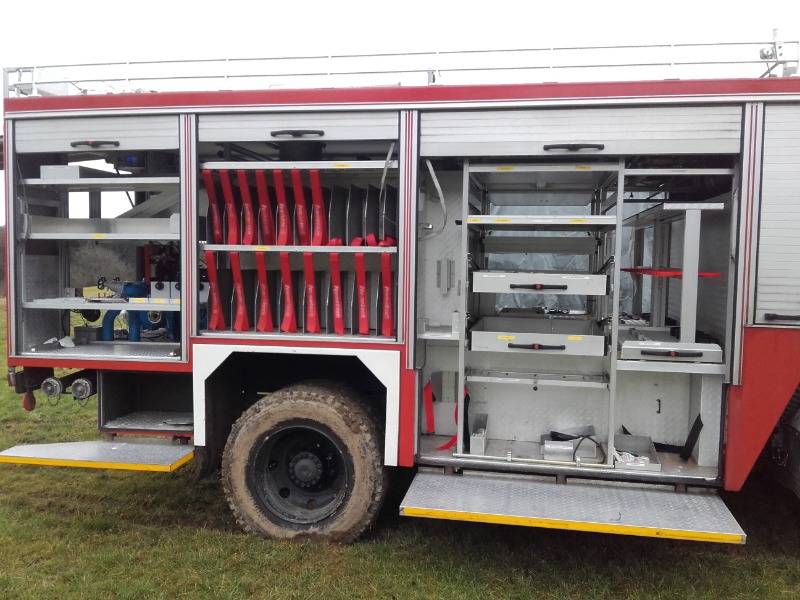 Feuerwehraufbau mit Lichtmast, Pumpe undTank