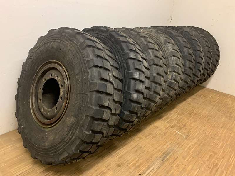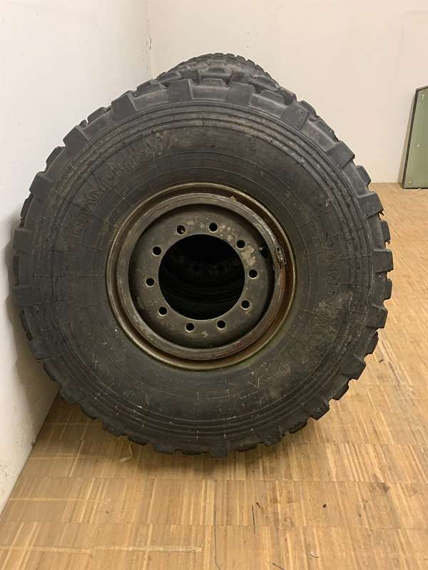 Reifen haben keine Risse oder Beschädigungen.Sprenggring Felgen vom S-LKW, ÖBH FelgeLochzahl 10 / Mittenbohrung 281 / Lochkreis 335.