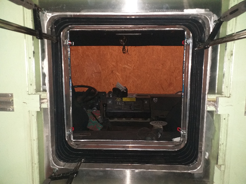 Hallo zusammen, zur Kostenreduktion habe ich zwei davon gemacht und verkaufe daher hier einen.Durchgang innen: 600x600, Material Alu, Außenmaß des Faltenbalges: 900x900Der Faltenbalg ist aus hochwertiger industrieller LKW/PVC-Plane und dabei sind 2 Kastenprofilrahmen, die je am Fahrerhaus und am Koffer befestigt werden. Eine Seite ist mit einem Flachstab und dem Balg fest verklebt und vernietet. Die andere Seite ist ebenfalls mit zwei Rahmen verklebt und verschraubt, die wiederum mit Schnellverschlüssen an dem Rahmen am Fahrerhaus befestigt werden können. Bei Koffer und Fahrerhaus habe ich jeweils ein Alu-Blech als "Wand" angenietet. Auf den Innenseiten könnten dann weitere Rahmen mit ggf. einer Tür eingesetzt werden. Alu-Resttafeln für dieses habe ich ggf. noch im Archiv.In den letzten 20 Jahren hatte ich verschiedene Varianten im Einsatz oder auch bei Freunden beobachten können. Meist ist es so, dass viele Materialien nicht durch extreme Verschränkung, sondern eher durch permanente kleine Bewegungen (hin und her) ermüden und irgendwann reißen oder Löcher bekommen. Auch über den schönen Gummibalg aus den Benelux-Staaten gibt es ja - auch hier im Forum - verschiedene Meinungen.Bei obiger Lösung finde ich es gut, dass man komplett in der vertikalen Ebene ist und alle Rahmen und auch die Plane in einer Ebene durchlaufen. Kein Umlegen, keine erhöhten Kanten und man hat einen schönen geraden Durchschlupf.Es sind 4 Segmente, also genauer gesagt 4 positive und 4 negative. Ich habe bei meinem LKW einen Abstand zwischen den Kastenprofilen von rund 200mm. Mehr ist natürlich möglich. Verschränkung ist so möglich, dass selbt bei extremer Lage der Balg nicht an den Anschlag gerät. Muss nachher nochmal ausrechnen, was rechnerisch an Versatz möglich wäre.Zur Montage müssen die Rahmen einfach jeweil am Koffer und Fahrerhaus angebracht werden.Materialkosten waren ca. 350 Euro und eine Woche reichlich Arbeit. 5 verschweißte Alurahmen und der Faltenbalg. Kastenprofli wurde an den Anlegekanten verschliffen, Stabilität bleibt aber durch die Kehlnaht und Eckstoßnaht erhalten.Ich hätte gern 750 Euro dafür.Gruß Felix