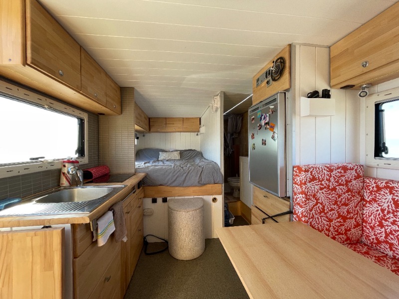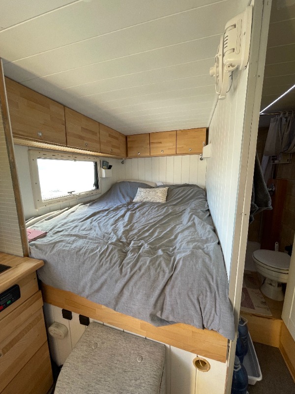 - Queen bed in the direction of travel and possibility of adding a child's bed in the living area.