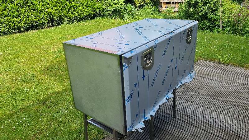 Dann habe ich noch eine Bawer Edelstahl Staukiste mit den Maßen 120x60x60 (noch nie verbaut gewesen).
