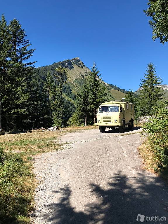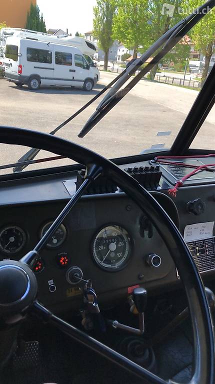 "Steyr A680G für die Reise ausrüsten. Das Fahrzeug ist reisefertig, Service und Gutachten sind auf dem neuesten Stand (Juli 2022). Die hinteren Bremsen und alle Öle sind neu.Die Einrichtung besteht aus einem Tisch für 4 Personen, einem ausziehbaren Bett (160-200cm), einem Küchenherd mit Holzofen, einem Kühlschrank und verschiedenen Ablagemöglichkeiten. Das Fahrzeug ist mit einer Solaranlage für die Stromversorgung und einer Webasto-Dieselheizung (80lt) ausgestattet.
