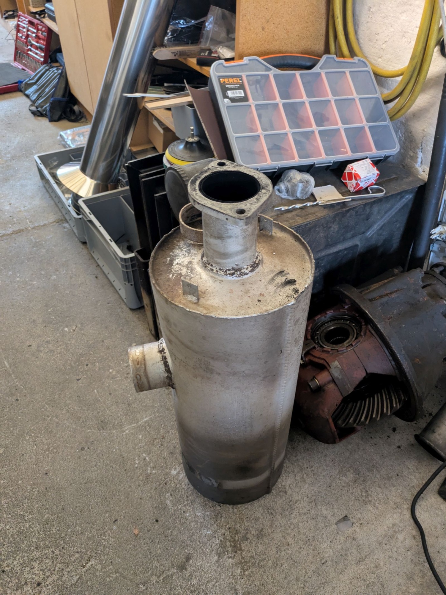 - Einen Endtopf von Camo (390 Euro neu), war nur ein paar Monate verbaut. Mit grauem Auspufflack aus der Spraydose lackiert.