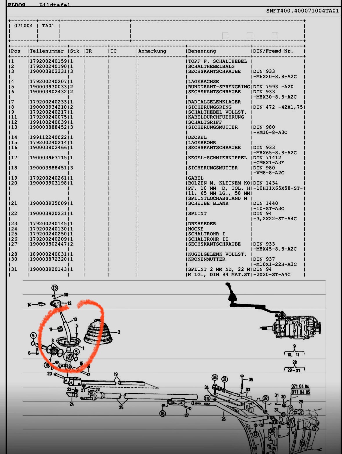 ich suche einen Topf für Schalthebel (Pos. 1 im Bild). Vielleicht hat jemand so etwas rumliegen?
