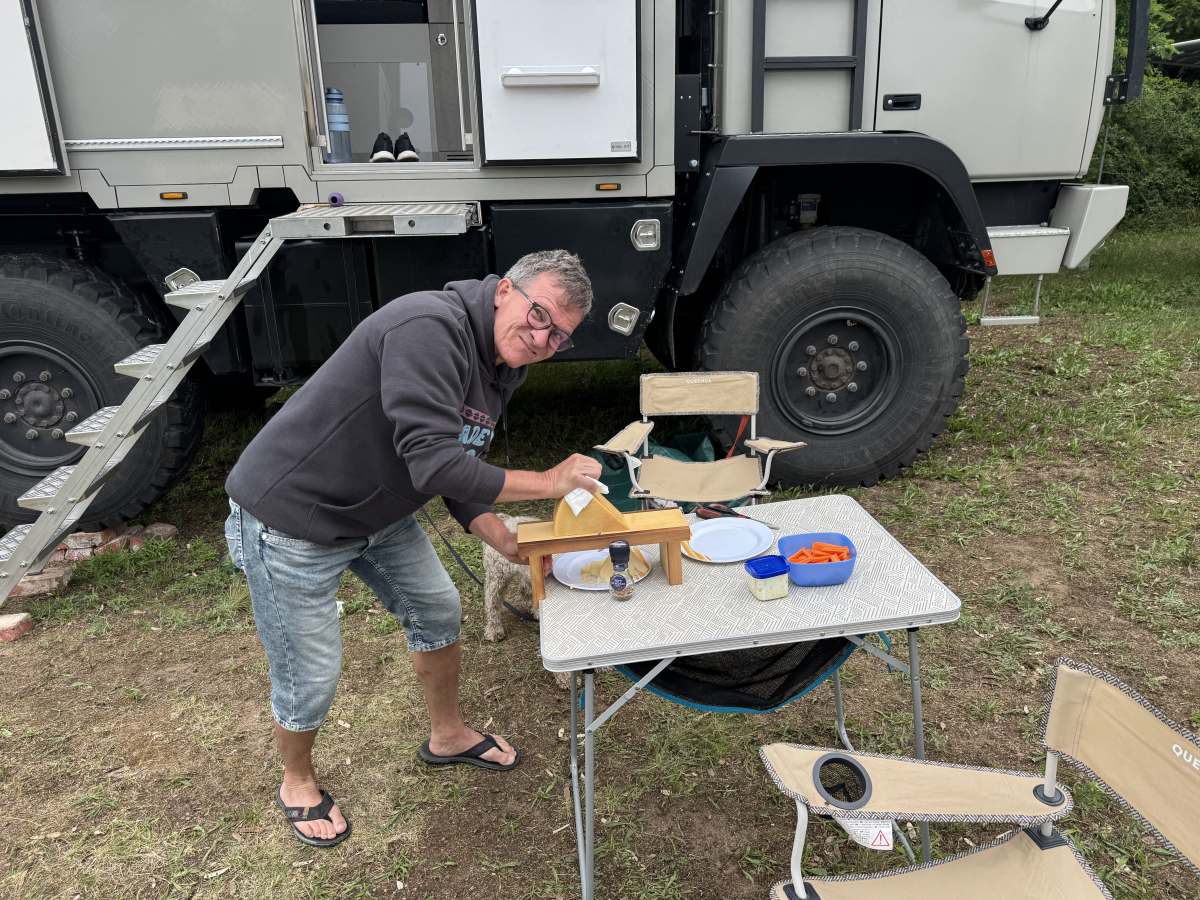 Irgendwie finde ich es immer noch schade das sich die Steyr-Gemeinde aufgeteilt hat in 12er und 680er, aber der große Vorteil des 680er Treffens ist die überschaubare Größe, man kann mit jedem sprechen, und der Platz am Feuer reicht aus damit alle warme Füße haben. Irgendwie wie eine große Familie. Der Treffenplatz ist zudem günstig mit Klöchen und Dusche, wiewohl das ja bei unseren Fahrzeugen kein Problem darstellen sollte.