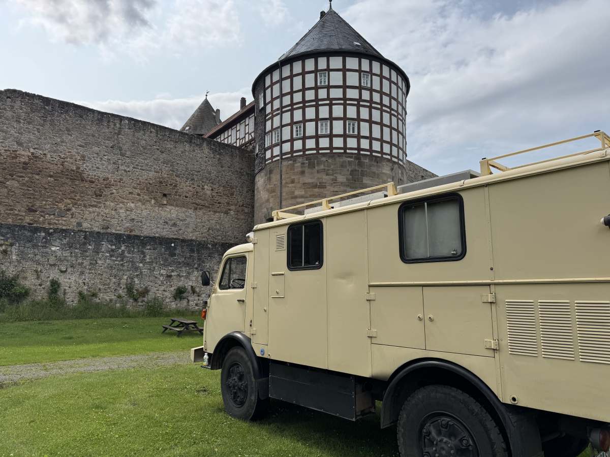 Auf der Rückfahrt dann zunächst einmal ein Super Stellplatz an der Burg Herzberg, der ist so groß das alle 60 (?) Steyr dort unterkommen würden: