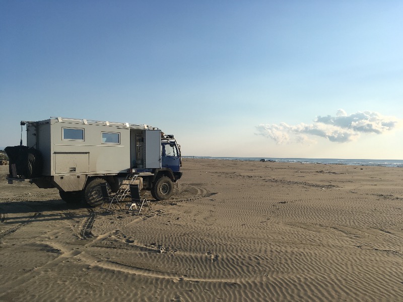 Man kann auch am Strand der Wasserlinie weit nach Süden fahren. Muss aber einen Fluss überqueren das nur bei Ebbe geht.
