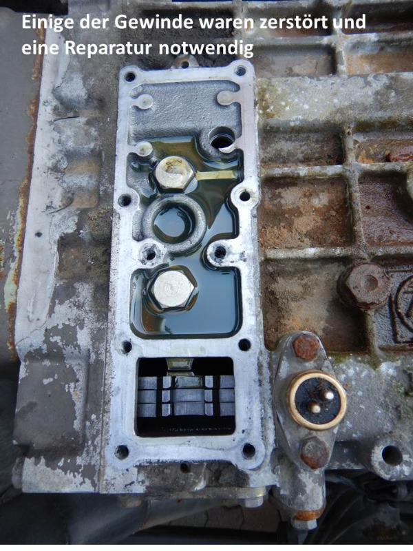 Leider hat einer meiner "Vorschrauber" die M8 Gewinde im Getriebe teilweise zertört.