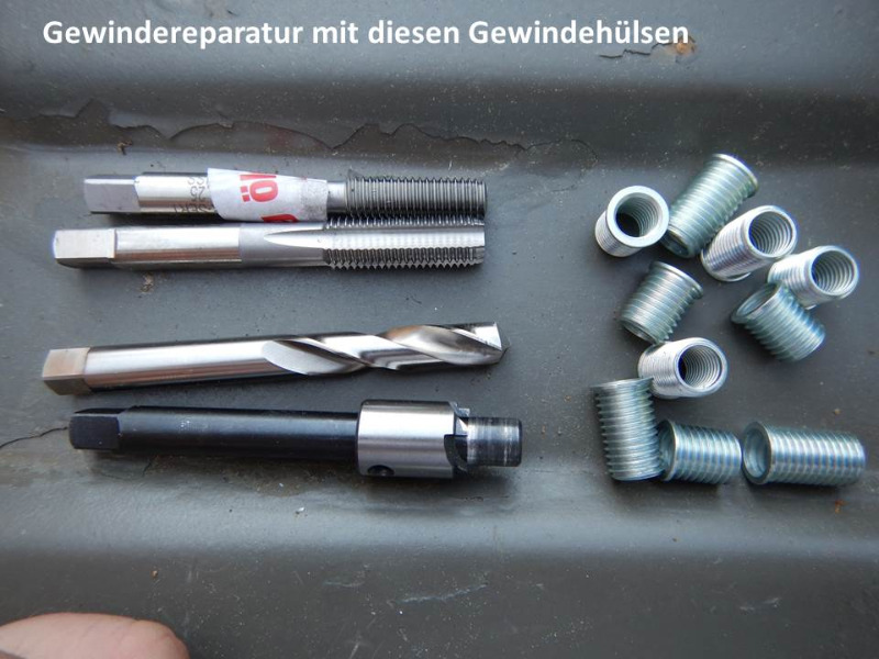 Die Gewindereparatur mit diesem System ist auch nicht auf meinem Mist gewachsen sondern habe ich mir von einer LKW-Werkstatt in der Nähe abgeschaut.