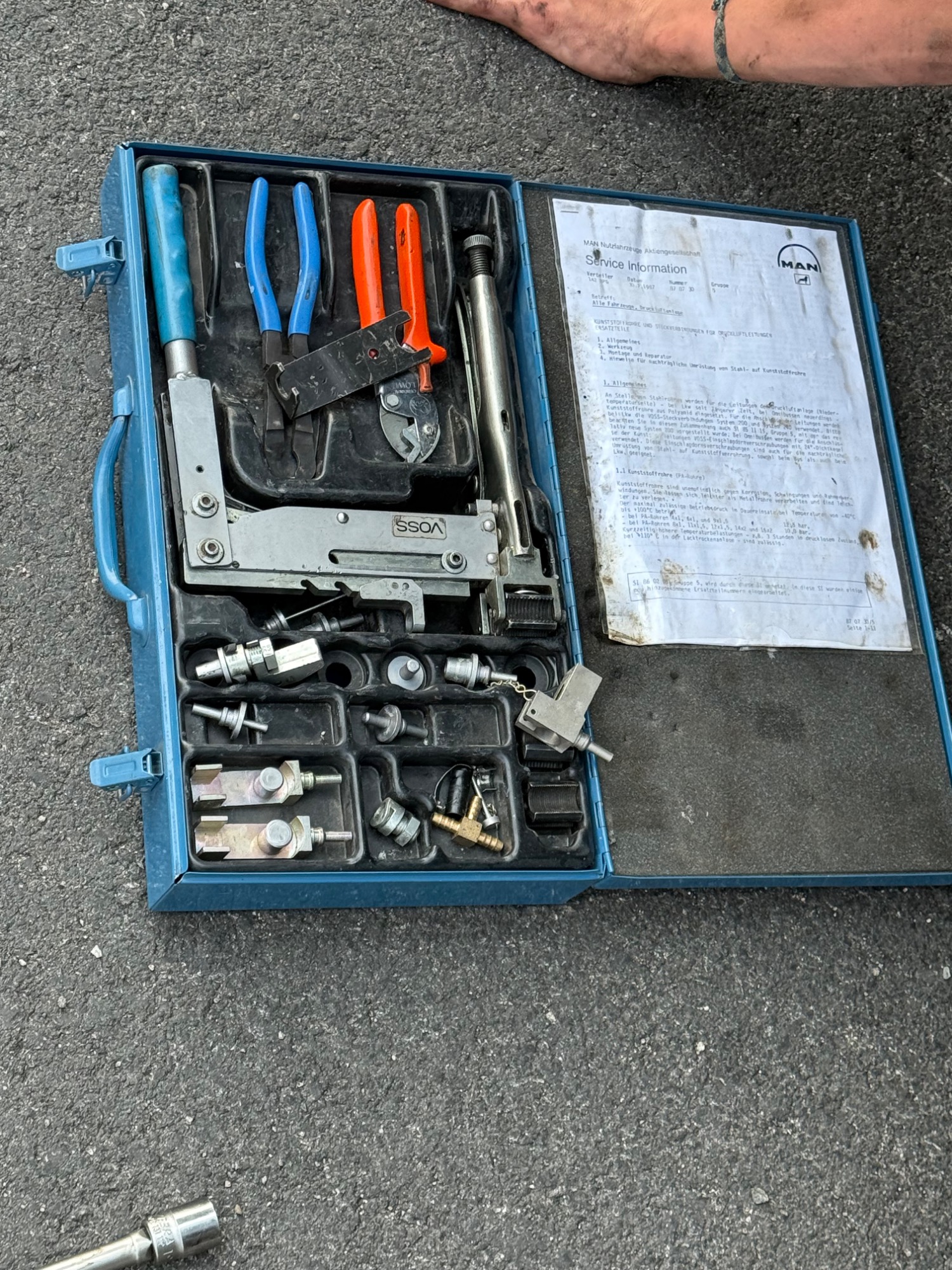 Das Montagewerkzeug von MAN ist endlos teuer. Ist aber echt ein geiles Teil. Klaus meinte jedoch, dass eine Montagezange für Tecalanrohr schon ausreichend wäre. Werde mir auch eine solche bestellen.