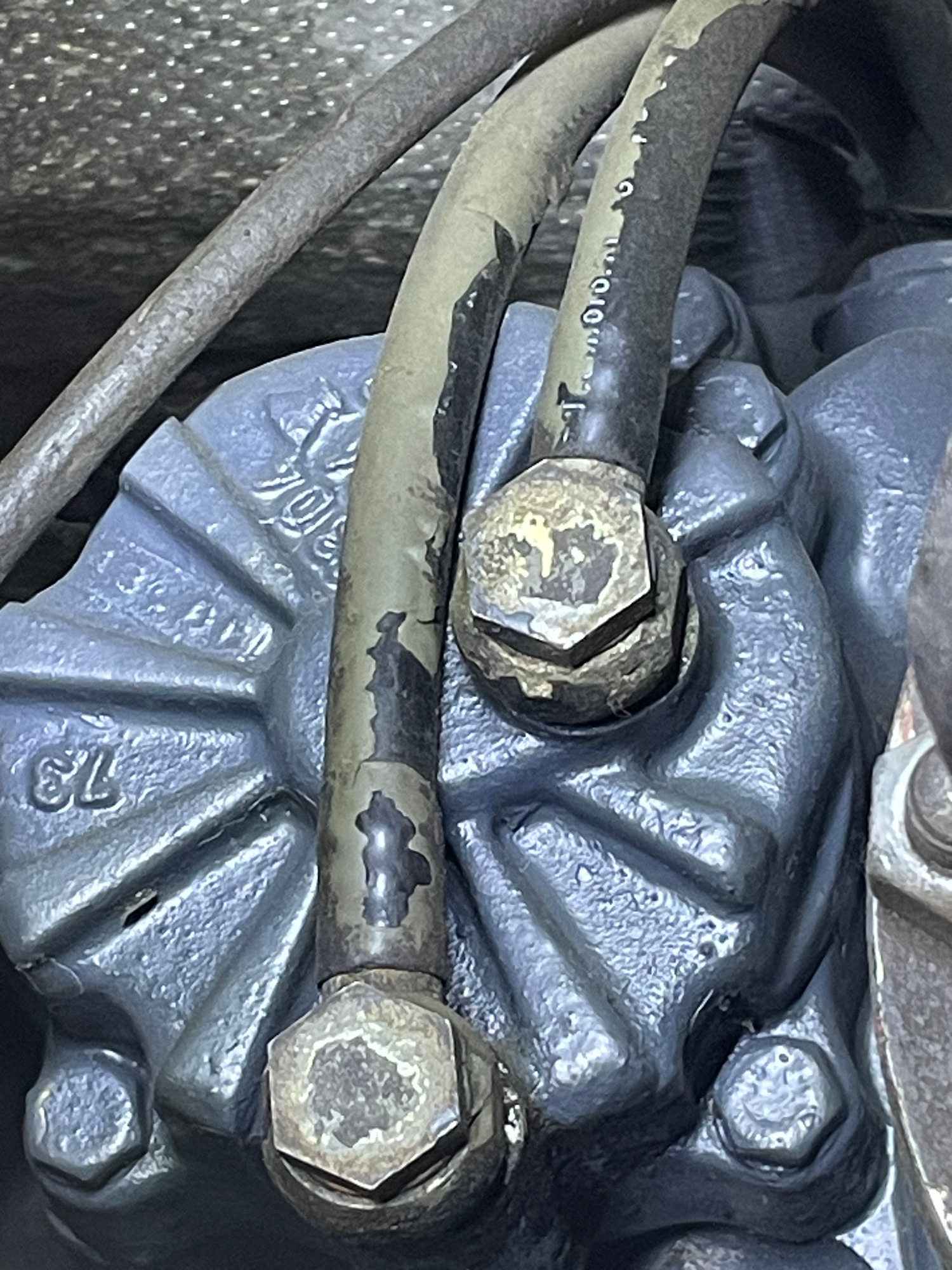 Leider war der Schlauch von vornherein schon so kurz, dass nach dem Kürzen nicht mehr montiert werden konnte. Daraufhin baute der Mechaniker einen längeren Schlauch zusammen und montierte ihn frisch.Bei der erneuten Montage zeigte sich jedoch, dass man immer die Dichtringe tauschen sollte (2 Stück 14-18 Cu). Also nochmal den Schlauch abmontiert und die Kupferringe getauscht.