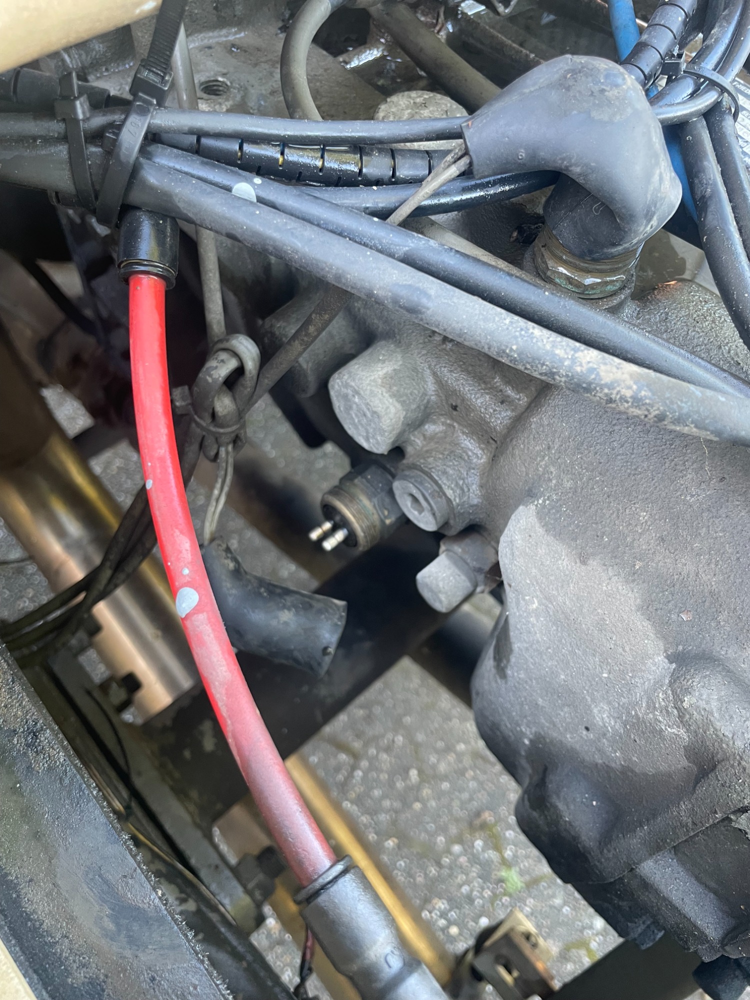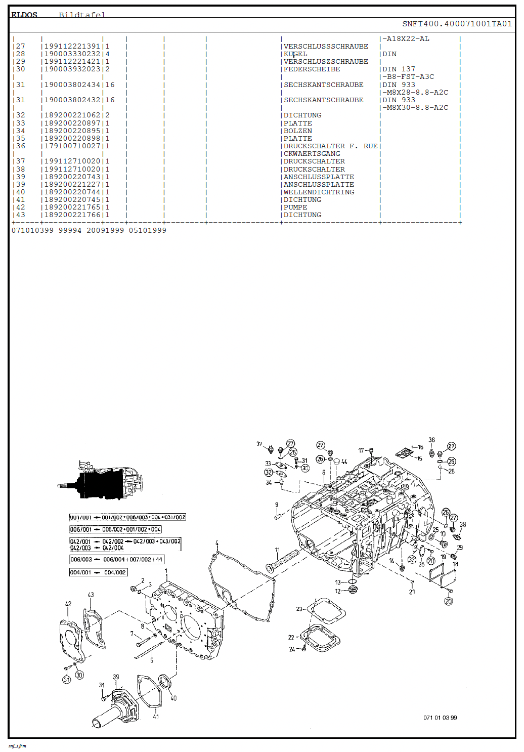 Es handelt sich um einen Druckschalter (199112710020, Nr. 38 laut der im Foto abgebildeten ELDOS-Seite) im Getriebe. Ich kann keine Kennzeichnung auf dem Getriebe erkennen, die angibt, wie die Kabel eingesteckt werden sollen (ein rotes und ein blaues Kabel).