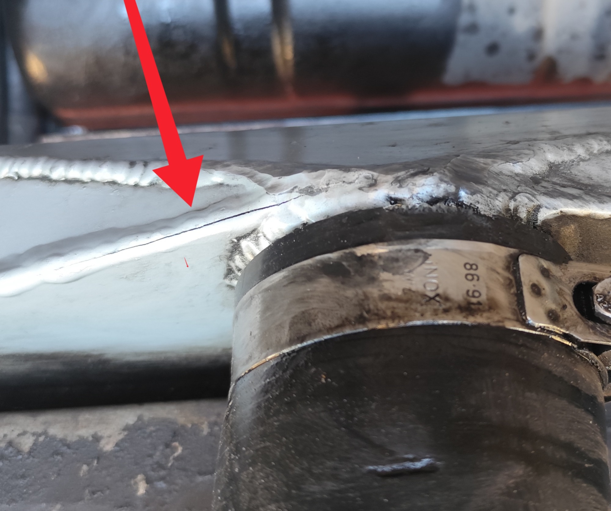 Moin in die Runde, wir haben an unserem 12M18 nach Erwerb bei Excap einen LLK nachrüsten lassen. Auf der aktuellen Reise wurde der Steyr im Gelände ordentlich gefordert. Dabei hat sich ein Leistungsverlust bemerkbar gemacht, der auf einem Riss im Rahmen des LLK beruhte. Der LLK scheint zu hoch eingebaut zu sein, das Fahrerhaus konnte so auf die Oberseite des LLK schlagen. Der Rahmen ist durch den Schlag gerissen/geplatzt. Der Riss konnte von einer Werkstatt in Nouakschott geschlossen werden. Für die weitere Reise schützen wir die Stelle mit einer Kautschukplatte. Zu Hause werde ich nach einer dauerhaften Lösung suchen, mal sehen was geht.
