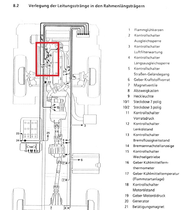 man kann es auf dem Bild nicht eindeutig zuordnen, deshalb versuche ich Dir beim Eingrenzen zu helfen. Schau mal auf den Elektroplan, vorne Links gibt es eigentlich nur die Stecker für Kühlmittel, Motoröl und Lenköl. Da müsste auch in Deiner Anzeige etwas fehlen.