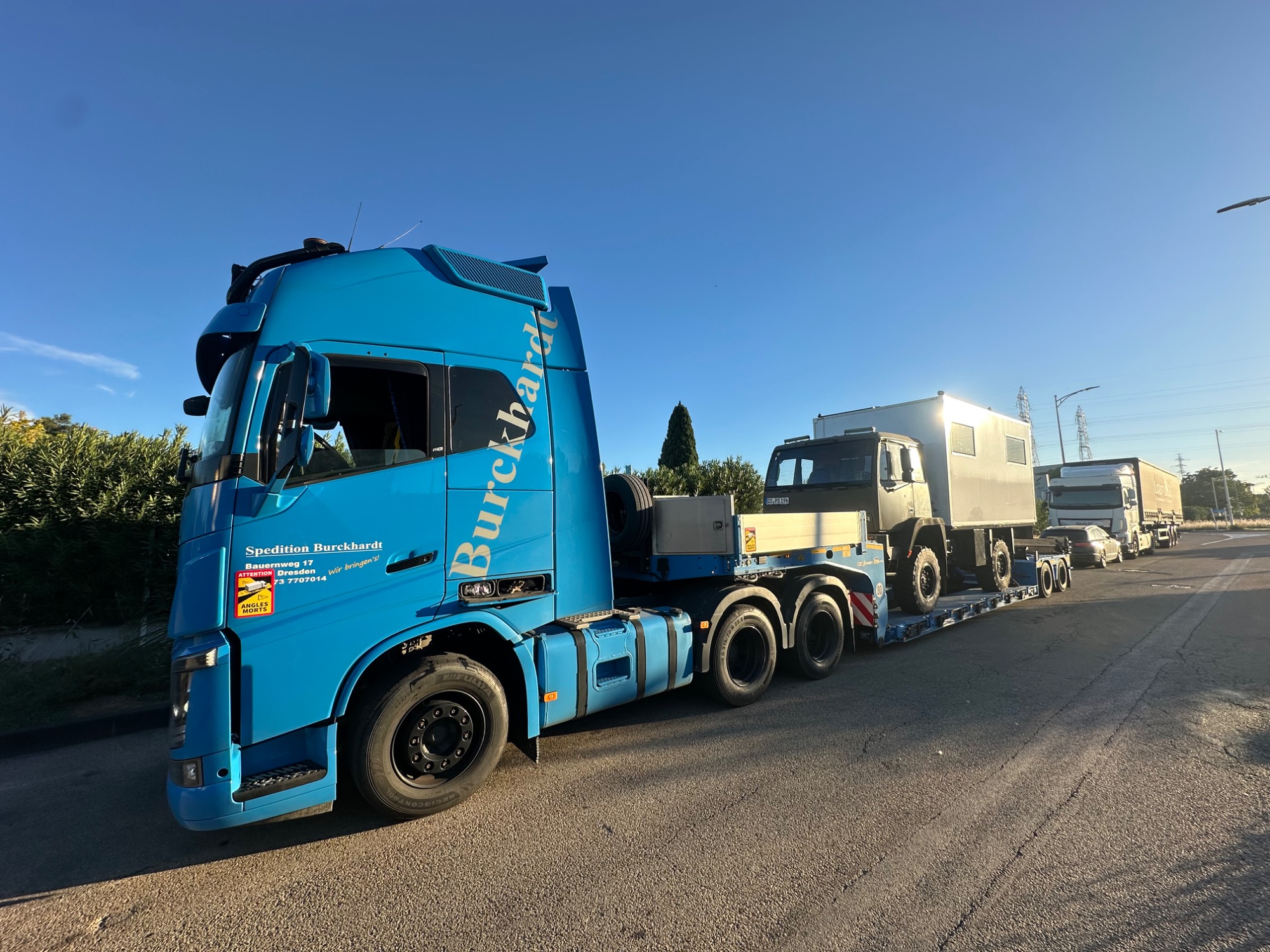 Gegen 19:30 stand unser dicker dann auf dem Tieflader und fährt nun zurück in die Heimat. Wir sind mittlerweile in Spanien und versuche. die restlichen 4 Wochen unserer Elternzeit zu genießen und ein wenig abzuschalten.